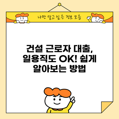 건설 근로자 대출, 일용직도 OK! 쉽게 알아보는 방법