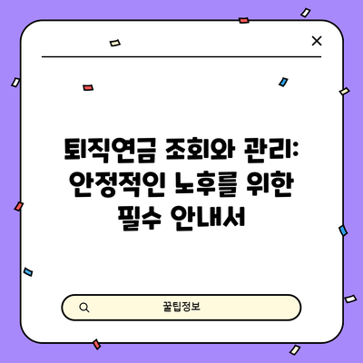 ✅ 퇴직연금 관리 팁을 통해 미래를 준비하세요.