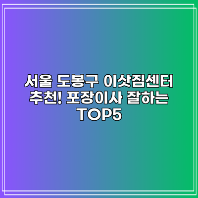 오늘은 서울 도봉구에서 포장이사를 잘하는 업체 TOP5를 소개해 드릴게요. 각 업체의 특징과 장점을 자세히 알아보도록 하겠습니다.