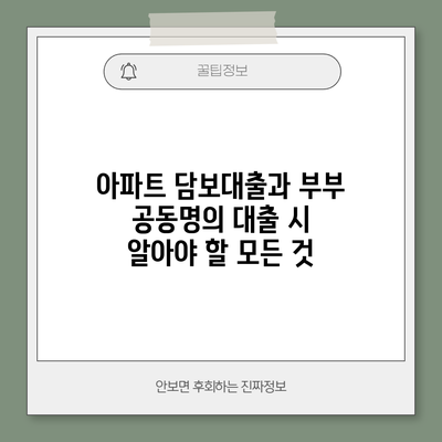 아파트 담보대출과 부부 공동명의 대출의 특성을 잘 이해하는 것이 중요해요. 계약 날짜를 신중하게 결정하고, 공동명의 대출에 대한 장단점을 균형 있게 고려해야 해요. 이러한 점들을 잘 알고 나면 보다 안정적이고 효율적인 대출을 받을 수 있을 거예요.