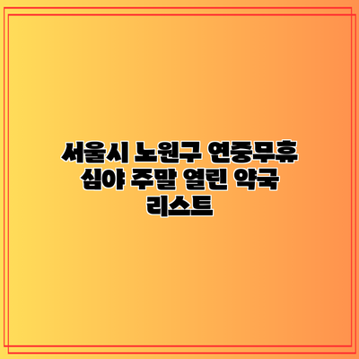 아래는 서울시 노원구의 연중무휴 약국 목록입니다. 이 정보를 통해 필요한 약국을 쉽게 찾을 수 있습니다.