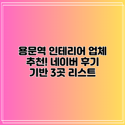 A1: 용문역 주변에서 추천할 만한 인테리어 업체는 무료견적, 인테리어바로, 소원인테리어입니다.
